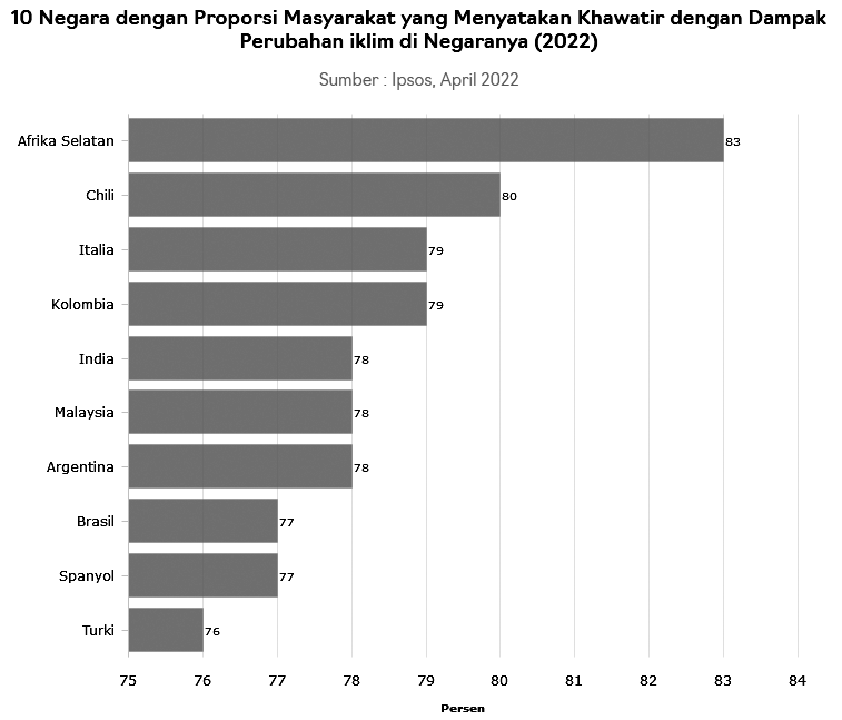 Afrika Selatan. Menyandang status sebagai salah satu negara paling makmur di Benua Afrika nyatanya Afsel akrab dengan resesi. Sebelum negara lain mengalami resesi sebagai imbas pandemi Covid, Afsel sudah lebih dulu masuk jurang resesi pada tahun 2018. Kedatangan pandemi pada tahun 2020 telah memukul perekonomian negara ini ke level terdalam sejak 30 tahun terakhir dengan penyusutan PDB tahunan sebesar -51%. Berdasarkan survei Ipsos, Afsel juga berada pada posisi pertama dengan proporsi masyarakat yang khawatir dengan dampak dari perubahahan iklim. Perubahan iklim terjadi akibat emisi karbon sektor energi, produsen mobil, maskapai penerbangan, dan penyedia transportasi umum.