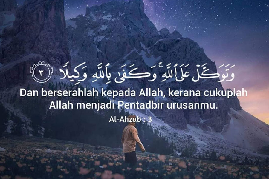 Jika kamu telah bertekad, bertawakallah kepada Allah. Sungguh Allah mencintai kaum yang bertawakal kepada-Nya (QS Ali ‘Imran [3]: 159).